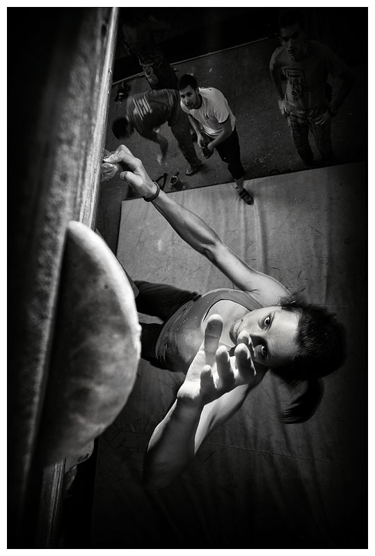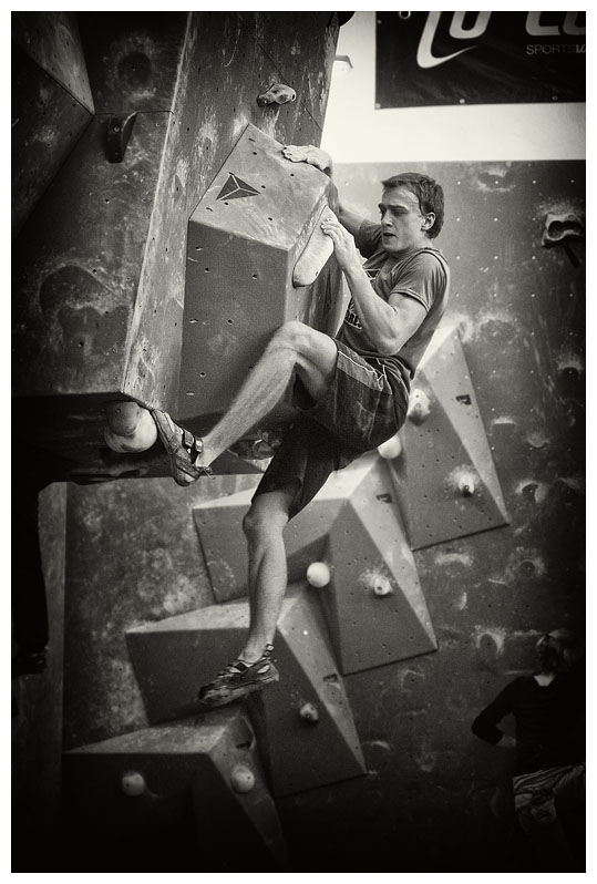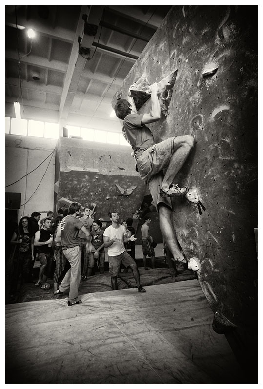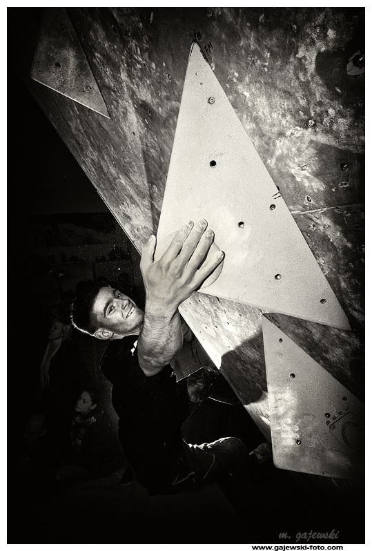 Pierwszy boulder mężczyzn poszedł jak składka poradziło sobie z nim, aż 4 zawodników co ciekawe wszyscy flashem: Krzysiek Szalacha, Paweł Grochowalski, Roman Batsenko i Yuriy Dziubiak. Problem drugi nie szedł już tak łatwo, chwytu topowego sięgnęła już tylko dwójka herosów z Ukrainy.