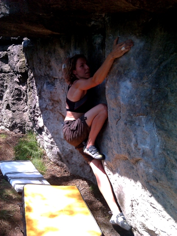 Okazuje się, że przwodniki po Sniezniku są zupelnie nieaktualne, a wręcz mogą nieźle wprowadzić w błąd. Mianowicie w zeszłą sobotę rozpatentowałam boulder o nazwie Dry Country 8A. Ucieszyłam się, gdy zaraz nastepnego dnia udało mi się go zrobić. Jednakże po powrocie do domu zajrzałam do wielkiej ksiegi wiedzy -internetu, żeby sprawdzić czy oby nie przecenili go np. na 7B, bo jak na 8A to wydał mi sie zbyt łatwy, w końcu 8A to musi trochę potrzymac;-) Nie przecenili... Ale co sie okazało, boulder nie leci od lewej do prawej, tak jak pisze w przewodniku, ale od prawej do lewej. Tak wiec 8A nie zrobiłam, ale za to omylkowo swój pierwszy własny boulder